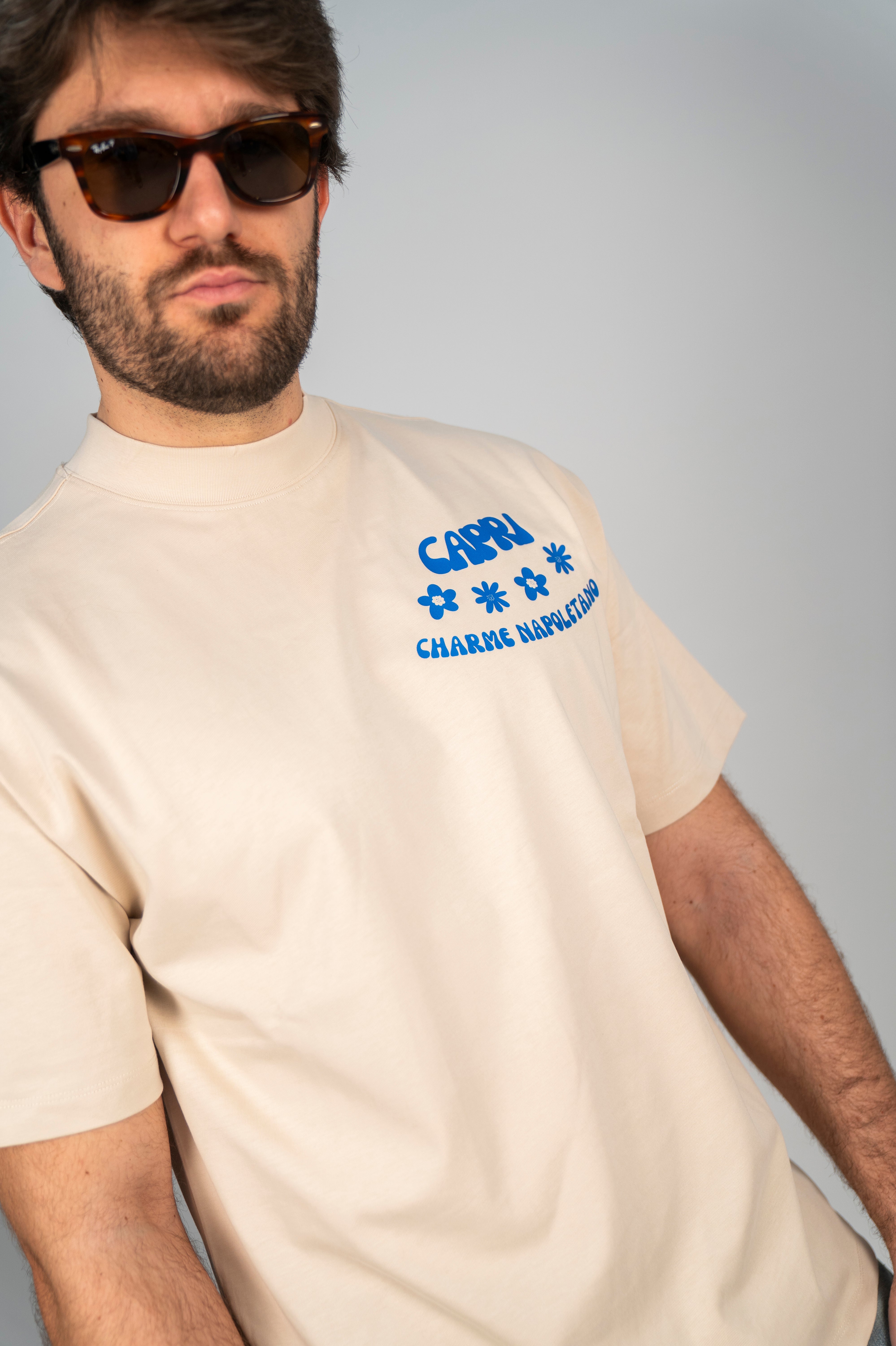 Questa t-shirt con la sua stampa "Capri Charme Napoletano" non è solo un capo d'abbigliamento, ma un invito a vivere con leggerezza e bellezza, come l'isola di Capri stessa. I fiorellini che decorano la scritta raccontano di un'armonia tra la natura e l’eleganza, mentre il messaggio incarna l’essenza di un fascino senza tempo, quello che solo Napoli e il suo mare sanno donare. Abbinata alla tote bag, questa combinazione diventa un omaggio alla dolcezza e al calore di un mondo che sa come sedurre senza forzature, semplicemente con il suo essere.